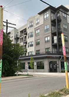 I WAS VERY EXCITED WHEN I WAS ASKED TO DO AN OUTDOOR MURAL FOR BRICS. GETTING TO PAINT ICE CREAM FOR A WEEK WAS LIKE A SWEET, SWEET DREAM. IN A RUSH OF INSPIRATION, I ALSO TRANSFORMED SOME FAKE FRUIT INTO LARGE CHERRIES TO PUT AT THE TOP. IT ADDS AN EXTRA LAYER OF INTRIGUE TO THE PIECE, AND I HOPE IT MAKES PEOPLE STOP AND SMILE.