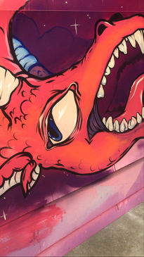 "OFF THE WALL" AT CHROMATIC COLLECTIVE- A SHOW WHERE SIX ARTISTS, INCLUDING MYSELF, PAINTED A PIECE OF A MURAL ON THE WALL. BEFORE THE MURALS WERE PAINTED, SQUARES OF MATBOARD WERE MOUNTED TO THE WALL, ALLOWING PATRONS TO TAKE A PIECE HOME.